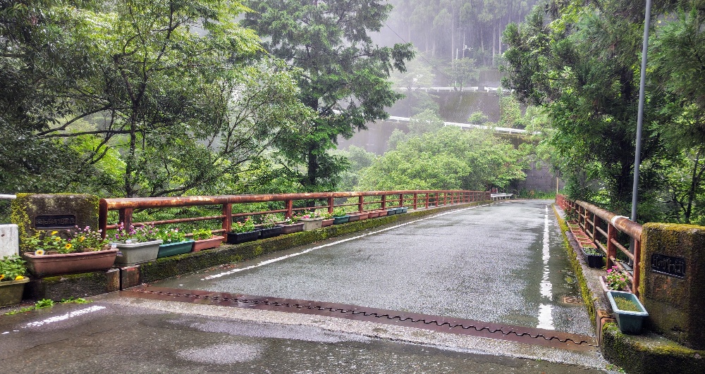数ある吉野川に架かる『吉野川橋』上流側からの第一号である。古びた赤い花壇付きの小さな橋。