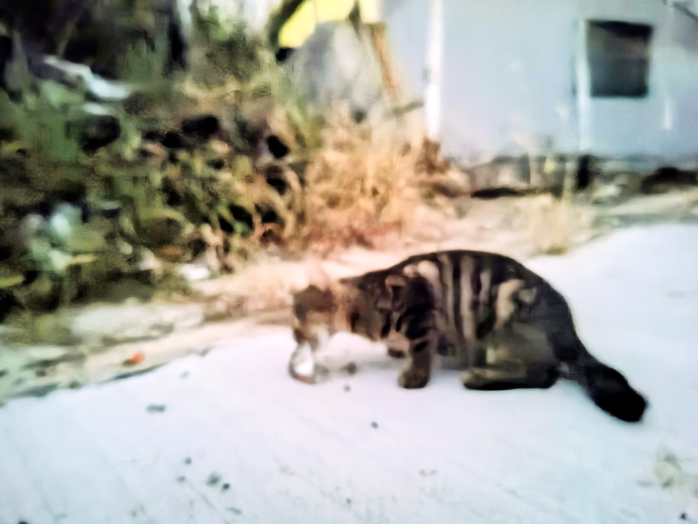 さらにもう一匹つづ与えたら、満足したのか?黒ネコは食べずに去っていき、虎ネコは黒ネコの分まで平らげてしまった。20㌢のサバを合計3匹。