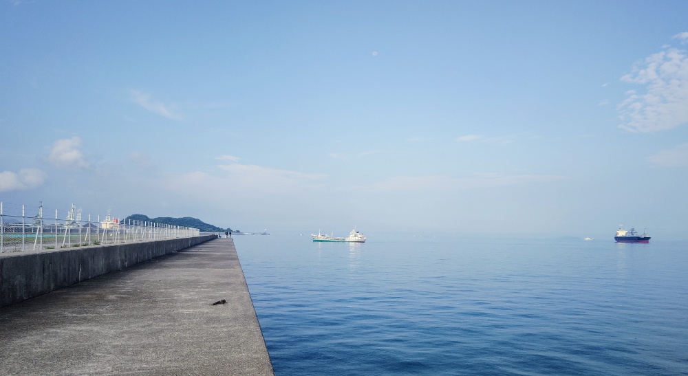 夕方4時半過ぎ、目の前に大阪湾。ついさっきまで伊勢湾にいた。疲れもあり訳が分からない。