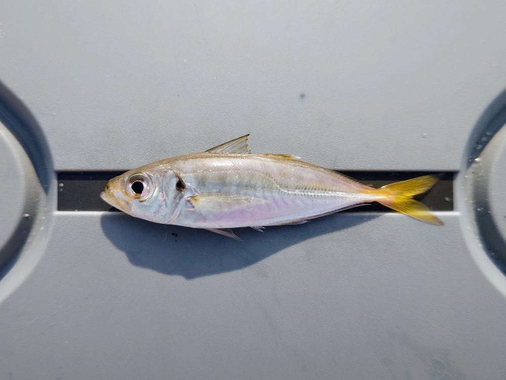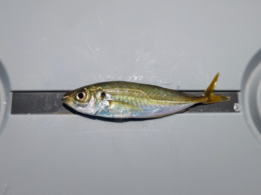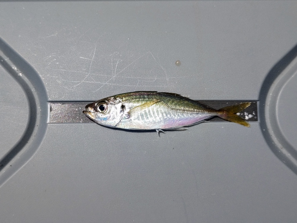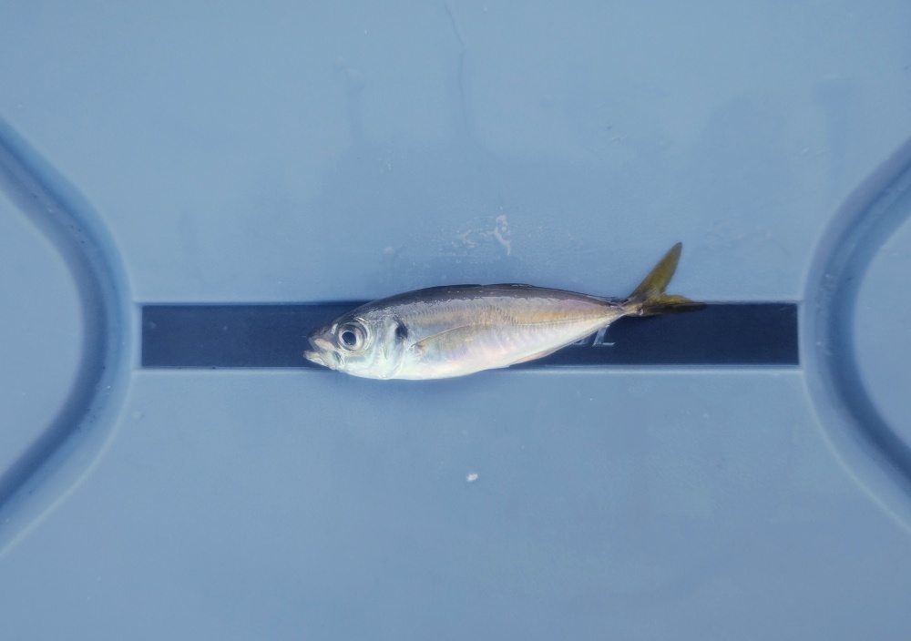 目やお腹にハリが刺さった豆アジだけをキープして、後はリリースしました。でもこの豆アジ。