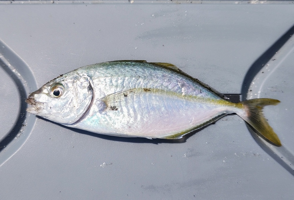 結構釣れ始めていました。遠目から見て白くて小さな魚、多分サッパでしょうか?別名ママカリ。