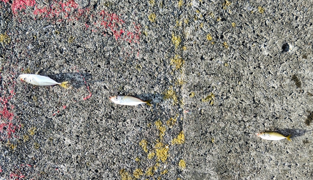 あまりやり過ぎるのはダメですね。ここの漁港ではいつもの光景なんですが、この日は動画撮影に手間取ってアジをあげ過ぎた。反省します。
